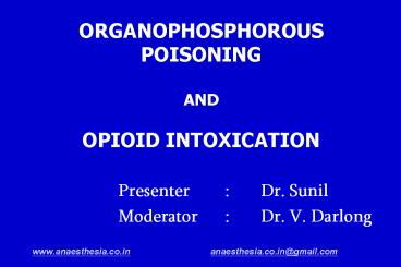 ORGANOPHOSPHOROUS POISONING AND OPIOID INTOXICATION PowerPoint PPT Presentation