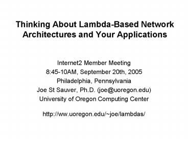 Title: Thinking About Lambda-Based Network Architectures and Your Applications