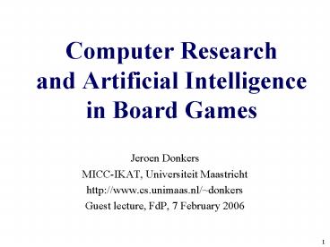 <Notice: Removed> Computer Research and Artificial Intelligence in Board Games PowerPoint PPT Presentation