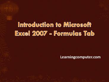 <Notice: Removed> Introduction to Microsoft Excel 2007 - Formulas Tab PowerPoint PPT Presentation