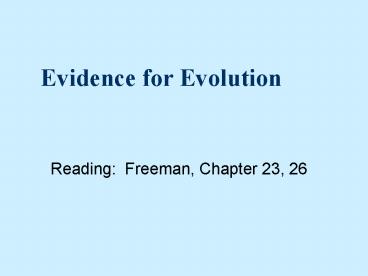 Evidence for Evolution PowerPoint PPT Presentation