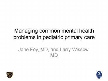 <Notice: Removed> Managing common mental health problems in pediatric primary care PowerPoint PPT Presentation