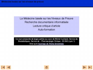 1- La Médecine basée sur les Niveaux de Preuve