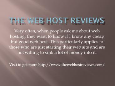 Visit us for more information http//www.thewebhos treviews.com/