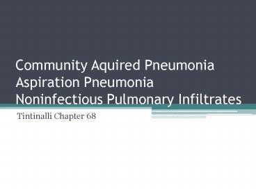 Community Aquired Pneumonia Aspiration Pneumonia Noninfectious Pulmonary Infiltrates PowerPoint PPT Presentation