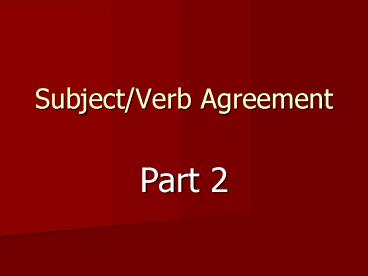 Subject/Verb Agreement PowerPoint PPT Presentation