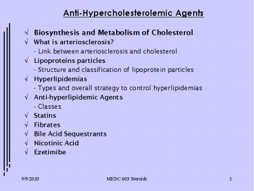 <Notice: Removed> Anti-Hypercholesterolemic Agents PowerPoint PPT Presentation