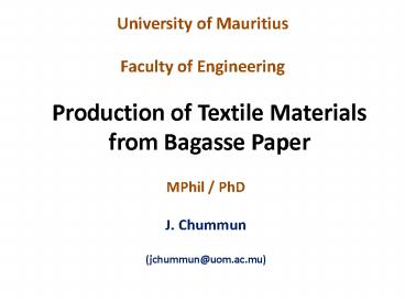 Title: Production of Textile Materials from Bagasse Paper
