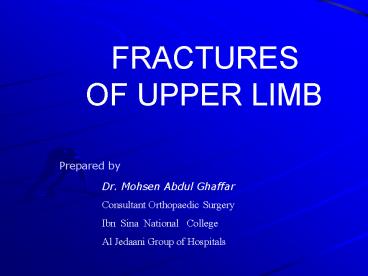 1 FRACTURES OF UPPER LIMB