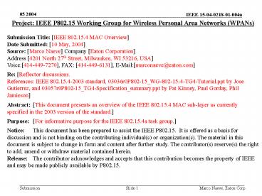IEEE 802.15.4 MAC Overview Date Submitted 10