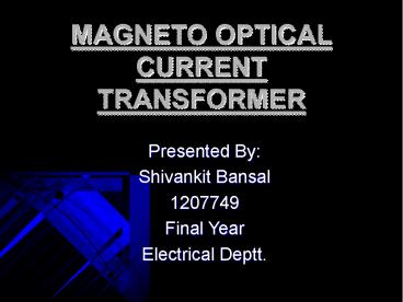MAGNETO OPTICAL CURRENT TRANSFORMER PowerPoint PPT Presentation