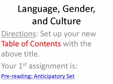 <Notice: Removed> Language, Gender, and Culture PowerPoint PPT Presentation