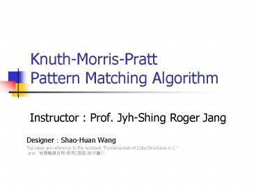 <Notice: Removed> Knuth-Morris-Pratt Pattern Matching Algorithm PowerPoint PPT Presentation