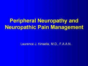 Title: Peripheral Neuropathy and Neuropathic Pain Management