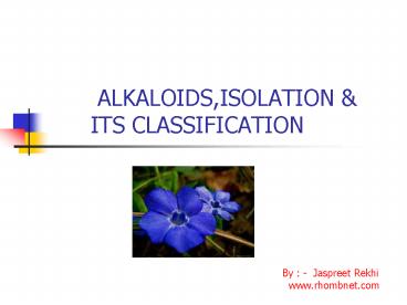 ALKALOIDS,ISOLATION PowerPoint PPT Presentation