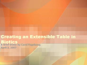 <Notice: Removed> Creating an Extensible Table in Biotics PowerPoint PPT Presentation