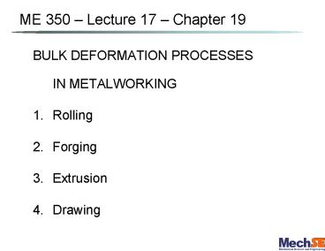 Title: BULK DEFORMATION PROCESSES IN METALWORKING
