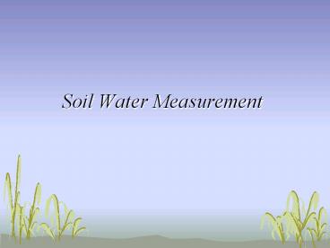 Title: Soil Water Measurement