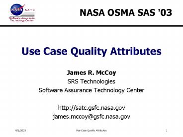 <Notice: Removed> NASA OSMA SAS '03 PowerPoint PPT Presentation