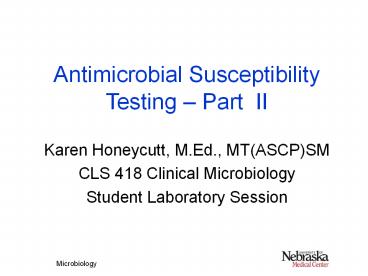 1Antimicrobial Susceptibility Testing Part II