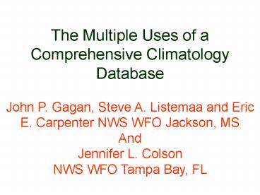 Title: The Multiple Uses of a Comprehensive Climatology Database