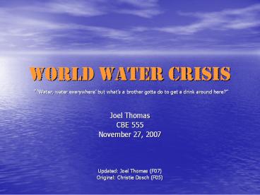 1World Water Crisis Water, water everywhere