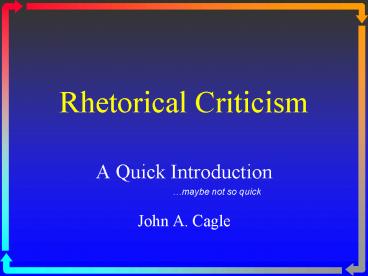 Title: Rhetorical Criticism
