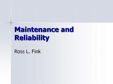 Maintenance and Reliability PowerPoint PPT Presentation