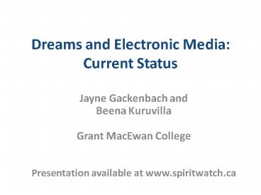 - Gackenbach, J.I. Kuruvilla, B. (2008, July).