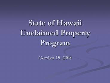 <Notice: Removed> State of Hawaii Unclaimed Property Program PowerPoint PPT Presentation
