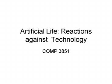 <Notice: Removed> Artificial Life: Reactions against Technology PowerPoint PPT Presentation