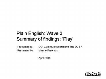 Title: Plain English: Wave 3 Summary of findings: Play