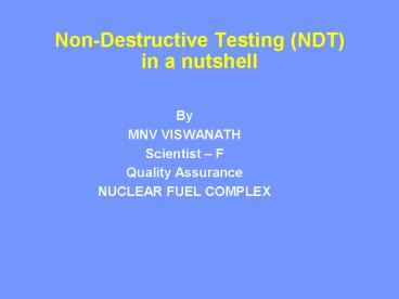 Title: Non-Destructive Testing (NDT) in a nutshell
