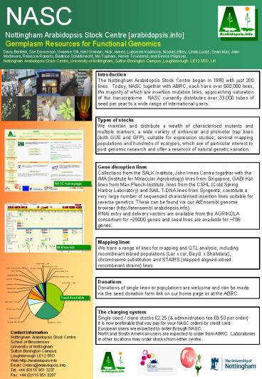 Contact Information Nottingham Arabidopsis Stock