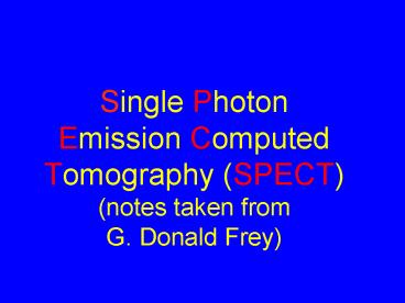 <Notice: Removed> Single Photon Emission Computed Tomography (SPECT) (notes taken from G. Donald Frey) PowerPoint PPT Presentation