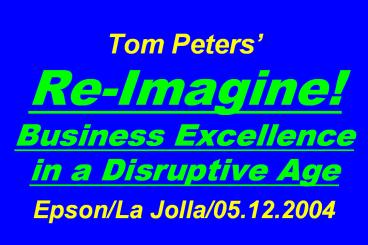 1 Tom Peters Re-Imagine!Business Excellence