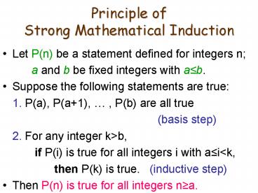 Principle of Strong Mathematical Induction PowerPoint PPT Presentation