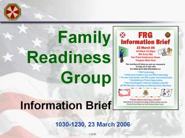 - IAW AR 600-20, Commanders may authorize FRGs to