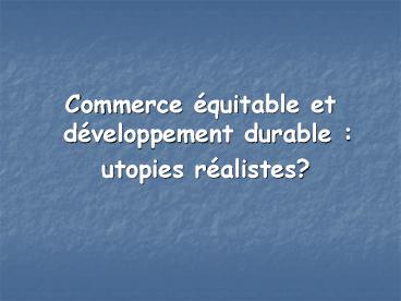 1- Commerce équitable et développement durable