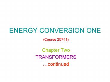 ENERGY CONVERSION ONE (Course 25741) PowerPoint PPT Presentation