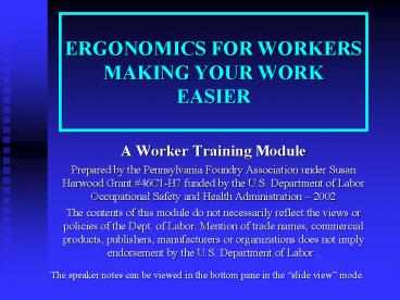 <Notice: Removed> A Worker Training Module PowerPoint PPT Presentation