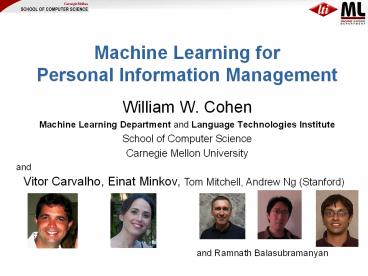<Notice: Removed> Machine Learning for Personal Information Management PowerPoint PPT Presentation
