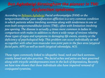 Ben Aghabeigi Birmingham the pioneer in TMJ dysfunction syndrome PowerPoint PPT Presentation