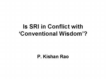 eventual, grain yields. - SRI is one such activity that has forced