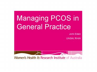 Managing PCOS in General Practice PowerPoint PPT Presentation