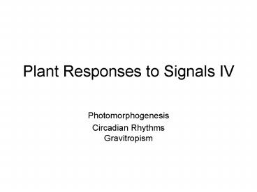 Title: Plant Responses to Signals IV