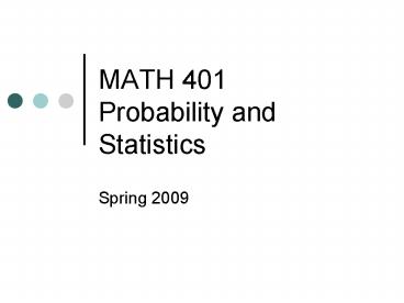 MATH 401 Probability and Statistics PowerPoint PPT Presentation