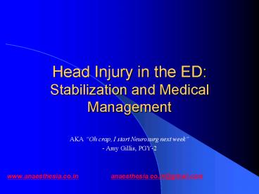 <Notice: Removed> Head Injury in the ED: Stabilization and Medical Management PowerPoint PPT Presentation