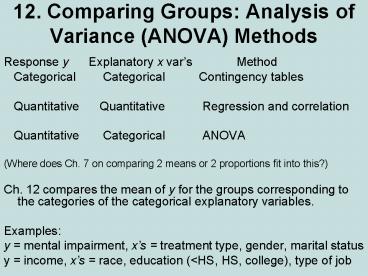 <Notice: Removed> 12. Comparing Groups: Analysis of Variance (ANOVA) Methods PowerPoint PPT Presentation