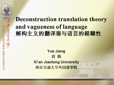 <Notice: Removed> Deconstruction translation theory and vagueness of language ??????????????? PowerPoint PPT Presentation